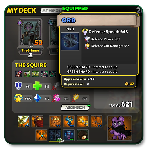 Heroes can now customize each of their defenses’ strengths individually by attaching a Defense Relic to them.